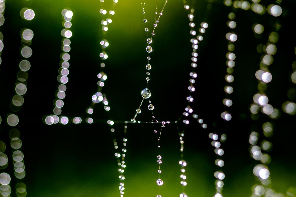 ... und wer die Spinnen selbst nicht mag, der fotografiert ihre Webbauten und Spinnennetze. Insbesondere im Herbst, wenn der Tau an den Seidenfäden baumeln, gehören Spinnennetze zu den beliebtesten Fotomotiven.