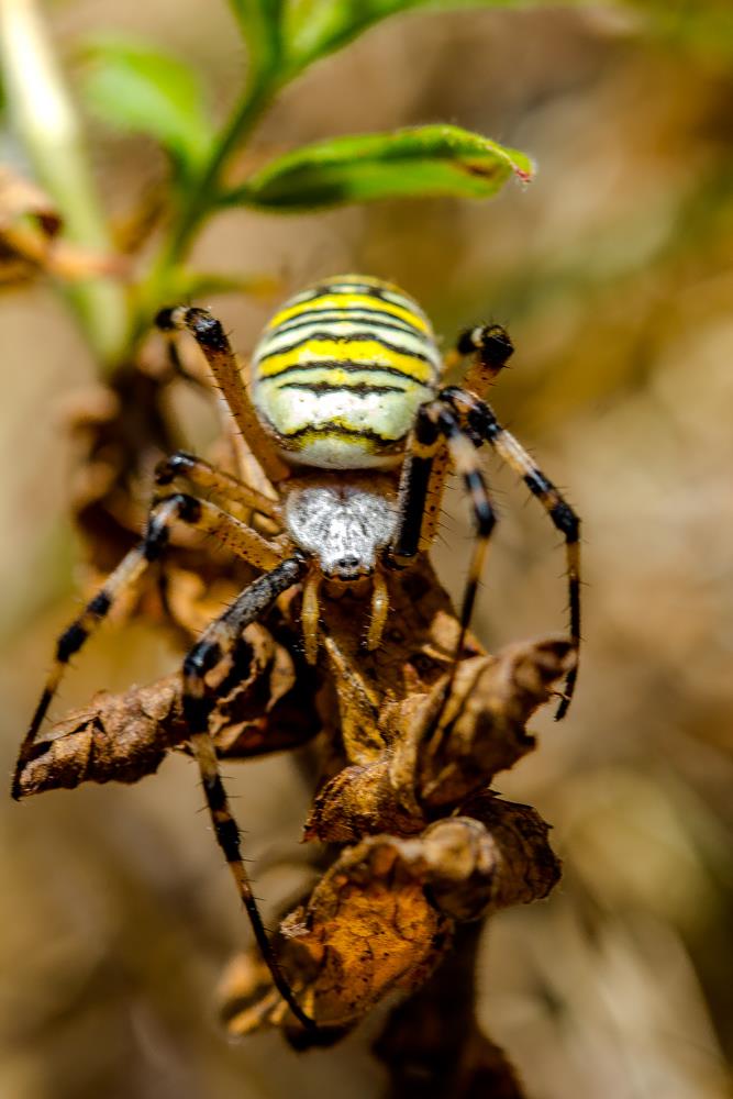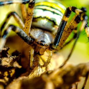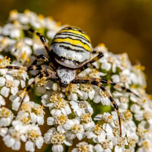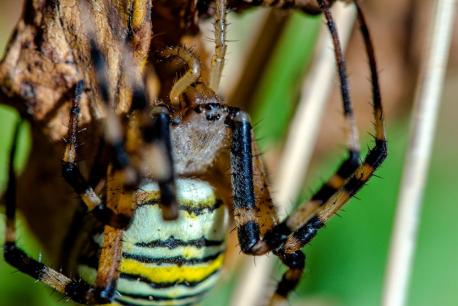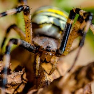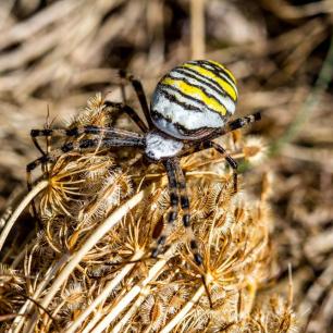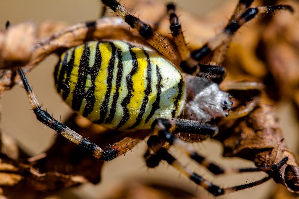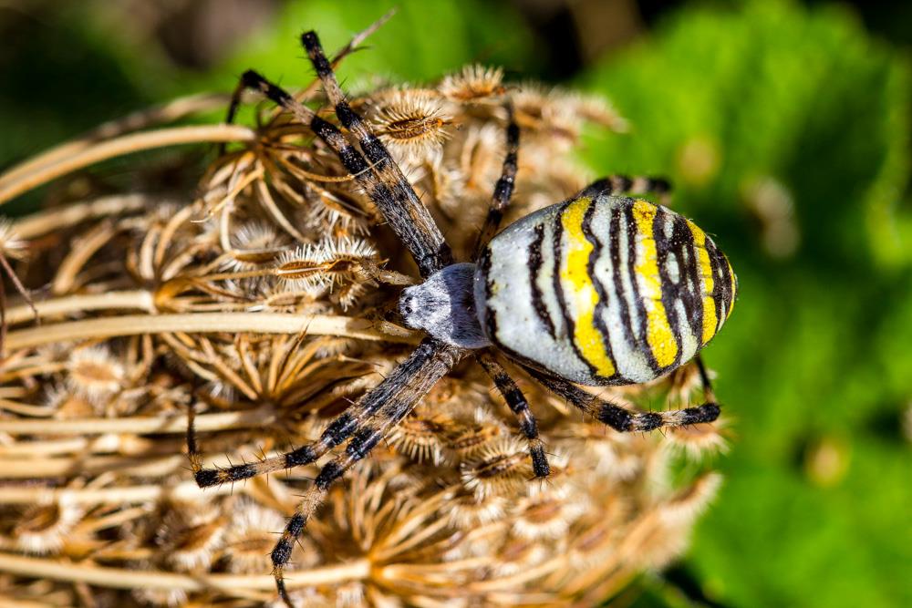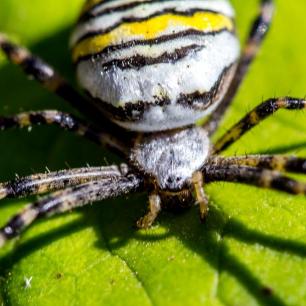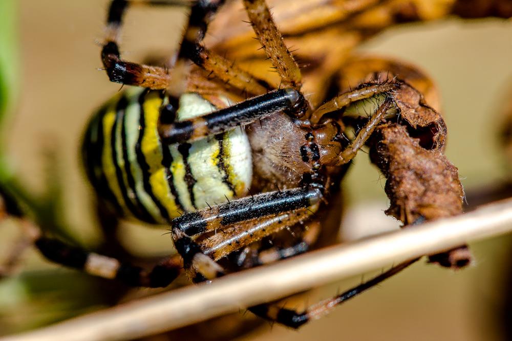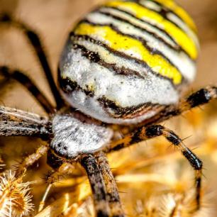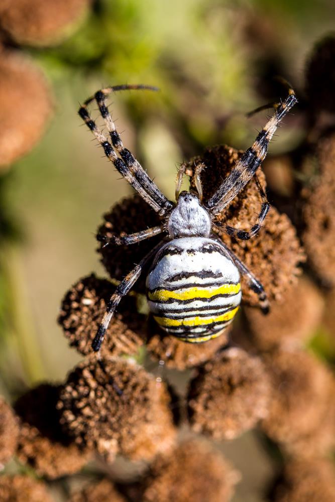Zu den ästhetischsten Spinnen gehören meiner Ansicht nach die Wespenspinnen. Mit ihrer schwarz-gelb-weiß gestreiften Färbung stechen sie zumindest farblich aus ihrer Familie heraus. Die große und sehr auffallend gezeichnete Art wurde 2001 zur Spinne des Jahres gewählt.