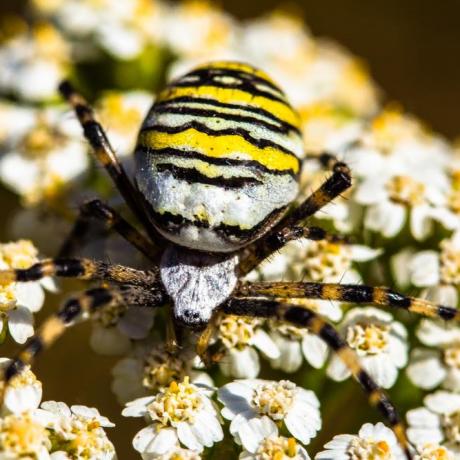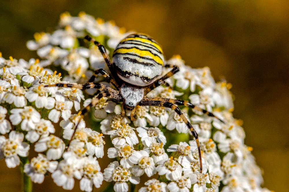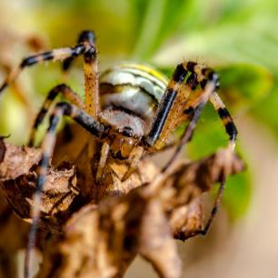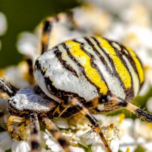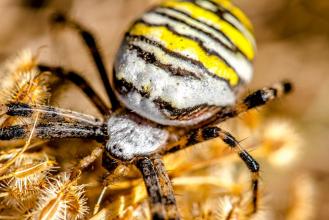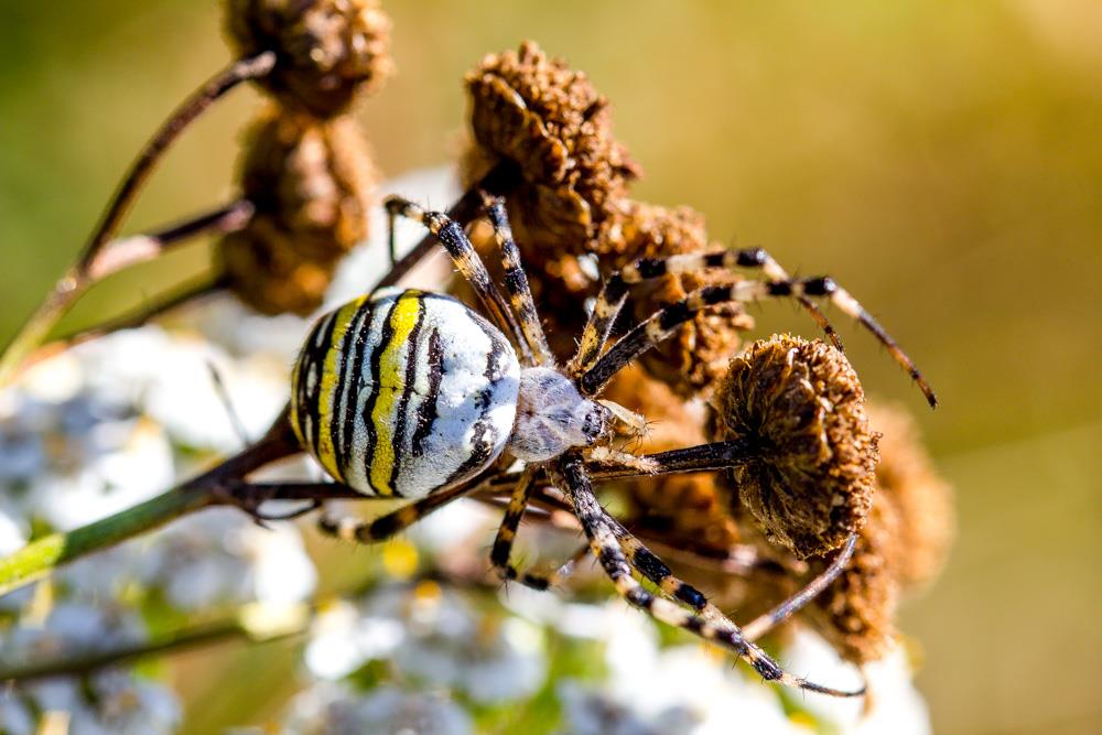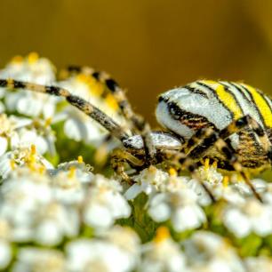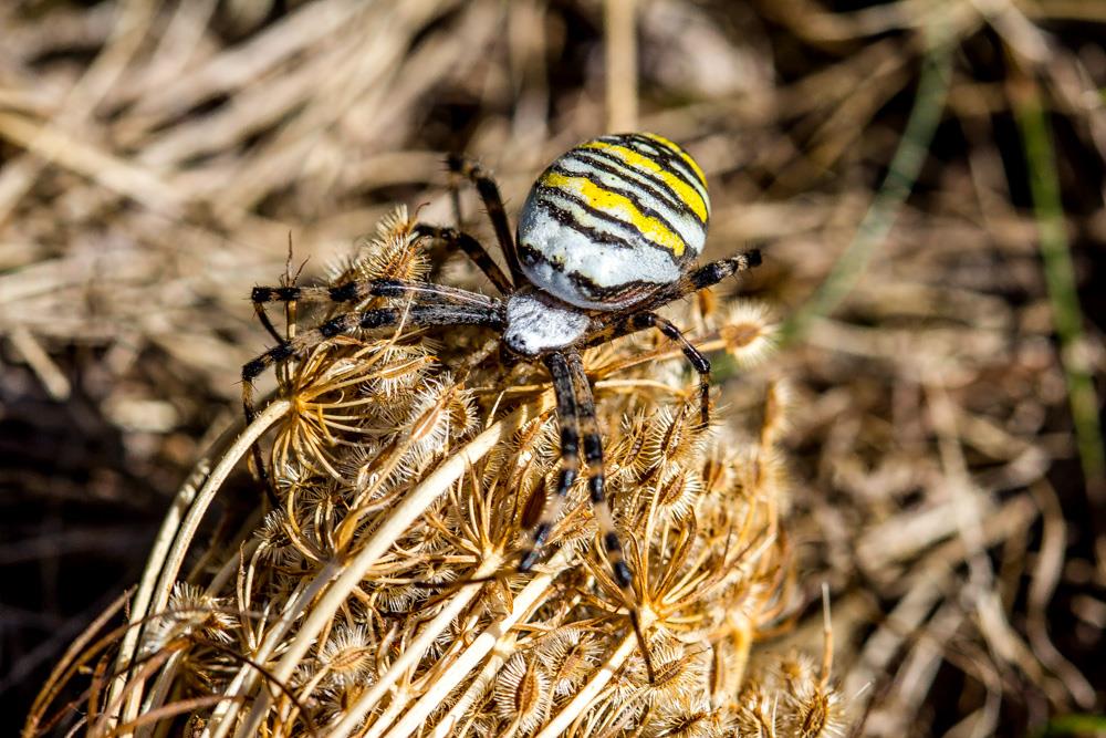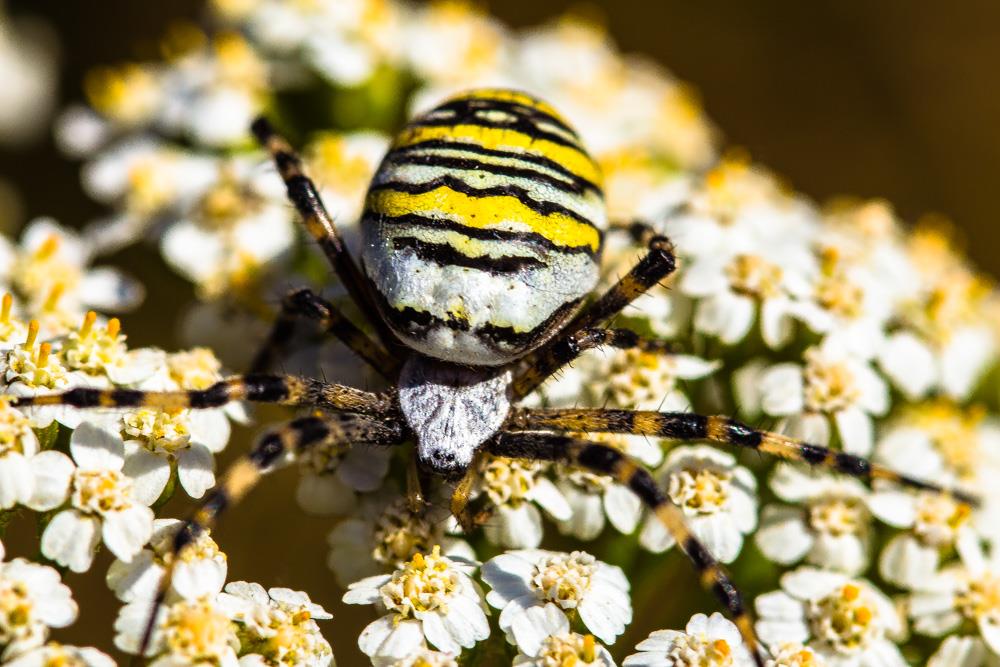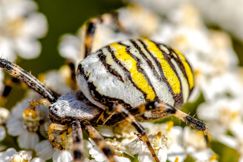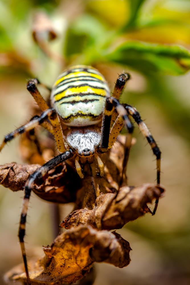Zu den ästhetischsten Spinnen gehören meiner Ansicht nach die Wespenspinnen. Mit ihrer schwarz-gelb-weiß gestreiften Färbung stechen sie zumindest farblich aus ihrer Familie heraus. Die große und sehr auffallend gezeichnete Art wurde 2001 zur Spinne des Jahres gewählt.